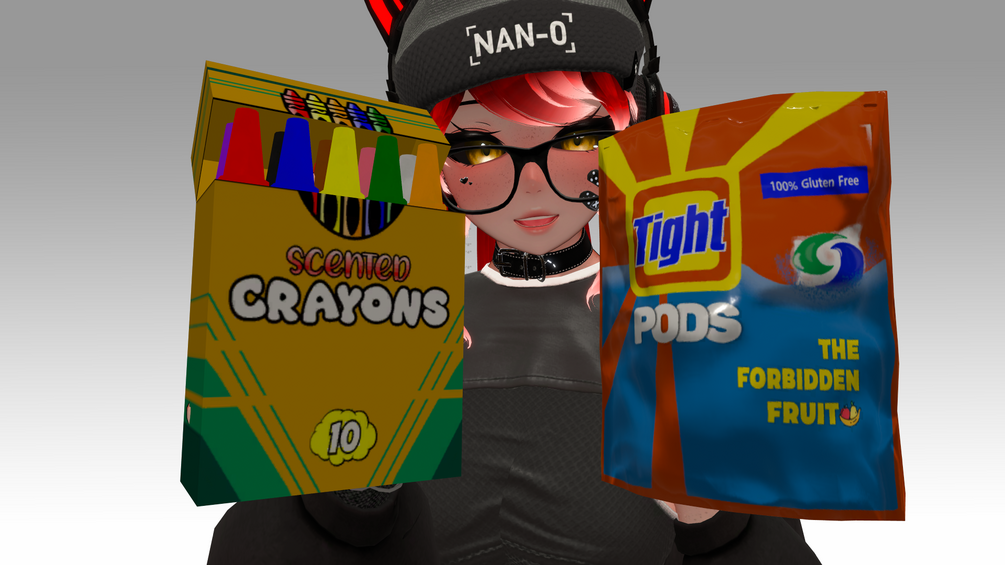 ⚠️ VIRTUAL CONTENT ONLY - These are digital props for VRChat avatars and do not represent real consumable items. Never consume actual crayons or laundry pods in real life.
